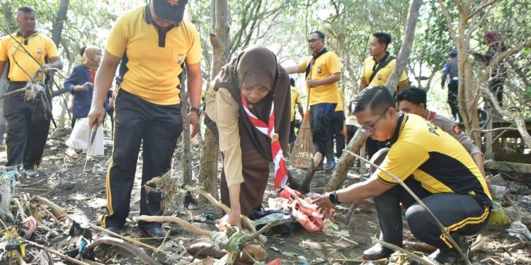 Kegiatan bersih-bersih pantai diikuti berbagai elemen masyarakat, Polri, TNI, Pemerintah, Mahasiswa, dan Masyarakat serta Nelayan sebagai bentuk sinergitas dan komitmen bersama untuk mencegah pencemaran linkungan yang diakibatkan sampah.